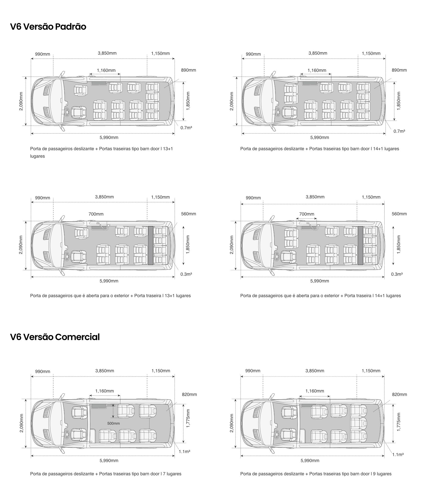 | V6 | Modelo | Versão Padrão | Versão Comercial |